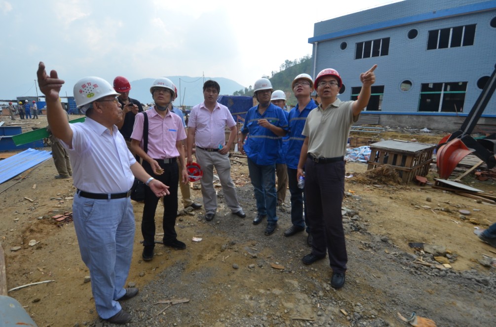 攀枝花恒德公司危廢處置項(xiàng)目工程建設(shè)總指揮、副總經(jīng)理袁杰在建設(shè)工地向劉東風(fēng)總經(jīng)理匯報(bào)工程施工及設(shè)備安裝概況。