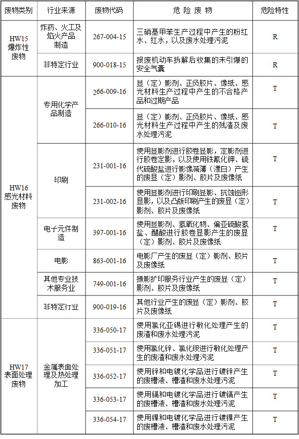 (二)行業(yè)來源,是指危險廢物的產(chǎn)生行業(yè)。
