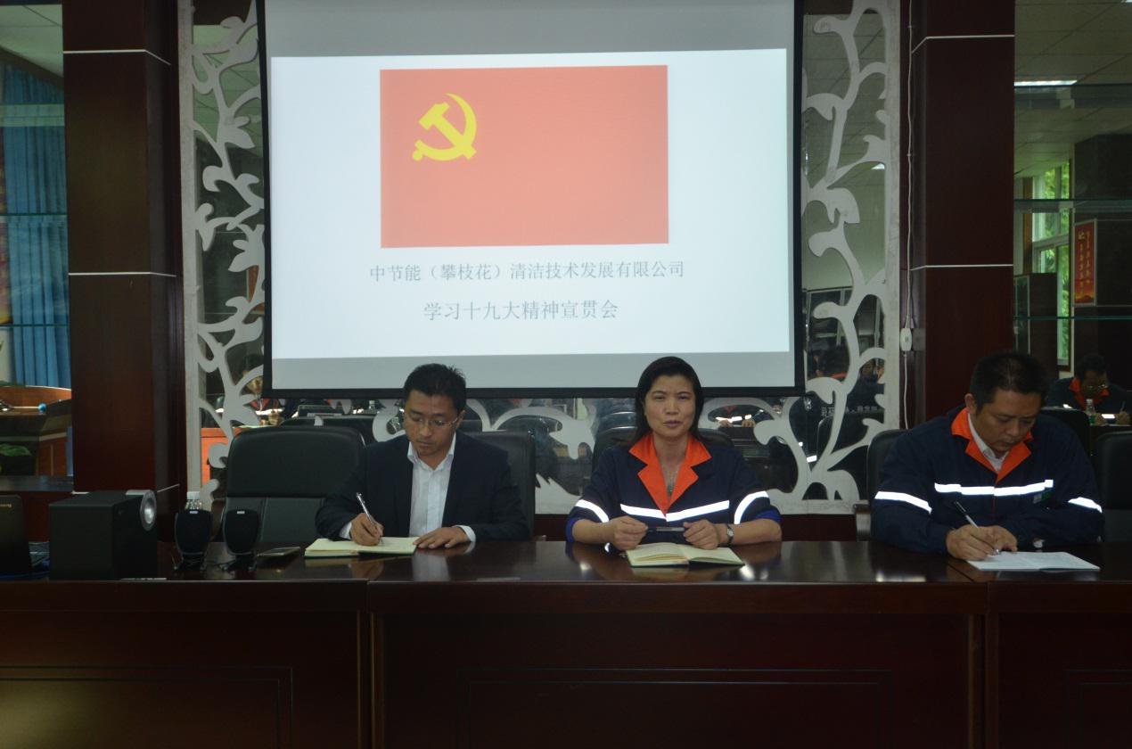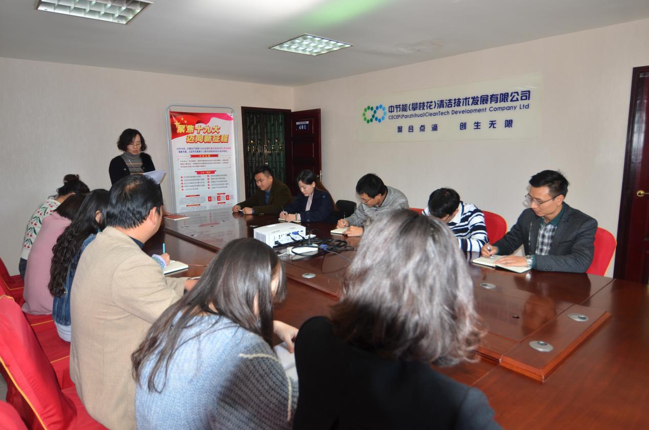 掀起學(xué)習(xí)十九大熱潮 推動公司持續(xù)發(fā)展 -----中節(jié)能攀枝花公司深入學(xué)習(xí)十九大精神 2017年12月4日下午,中節(jié)能(攀枝花)清潔技術(shù)發(fā)展有限公司在廠區(qū)二樓會議室組織召開“深入學(xué)習(xí)宣傳貫徹黨的